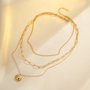 Delicate Golden Chained Triple Layered Necklace